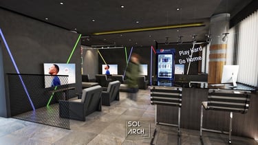 This interior design project for a Game Center in Soloturn, Switzerland, was developed to create a lively, functional, and visually appealing environment. With a surface area of 267 m², the space is designed to offer a unique experience for visitors through controlled lighting, dynamic colors, and the efficient distribution of gaming zones. The project was completed in 2022 in collaboration with the client M.G..