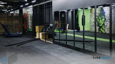 This interior design project for VR Crossfit aims to create a functional and motivating space for intensive workouts. Dedicated areas for running, weights, and functional exercises are efficiently organized to improve flow and enhance the members' experience. Designed in 2023 by Kubë Studio.