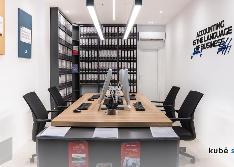 This interior design project for Joni Group’s office in Gjilan aims to create a space that clearly reflects the company’s professionalism and reliability in the field of accounting. With a minimalist approach, a calm color palette, and a clean spatial layout, the office offers a refined and efficient experience for both employees and clients. The project was completed in 2023 by Kubë Studio.