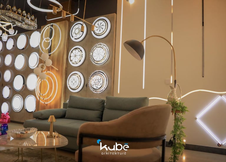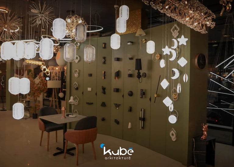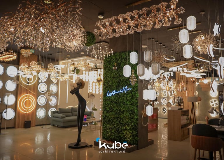 This design and organizational project for the 3lights showroom in Gjilan was conceived to create a functional and aesthetically pleasing environment for showcasing lighting products. With a surface area of 200 m², the space offers a clear visual flow and a structured experience for visitors. The project was completed in 2024 by Kubë Arkitekturë in collaboration with I.H